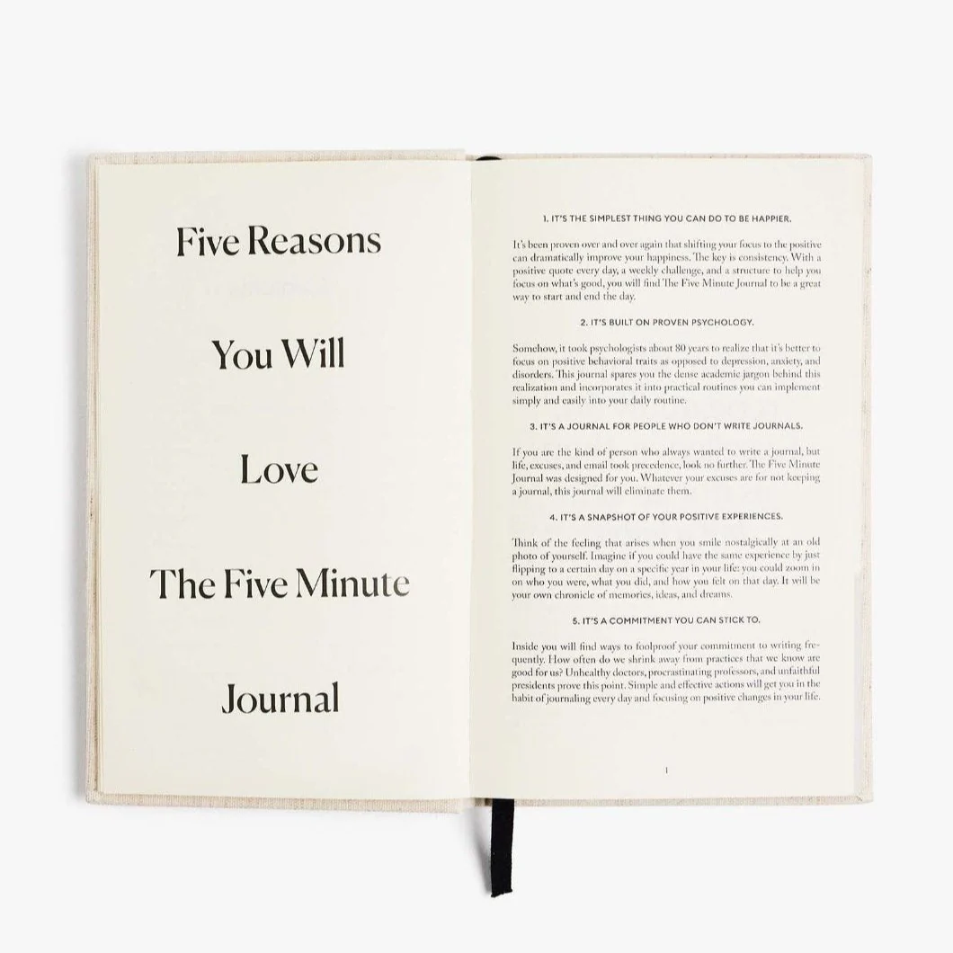 Transform your life with the Five Minute Journal. Even on the busiest days, spend only five minutes practicing gratitude to boost positivity, reduce anxiety, and improve well-being. It's the simplest, science-backed way to a happier you.